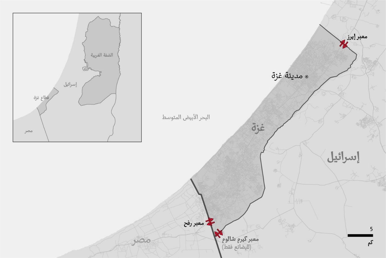 خفضت إسرائيل، بشكل ملحوظ، سيطرتها على قطاع غزة في العام 2005، عندما سحبت قواتها البرية الدائمة ومستوطناتها المدنية. ومع ذلك، فإنها لا تزال تسيطر على حركة الدخول إلى غزة والخروج منها، باستثناء معبر رفح، وتسيطر على كل المعابر بين غزة والضفة الغربية.
