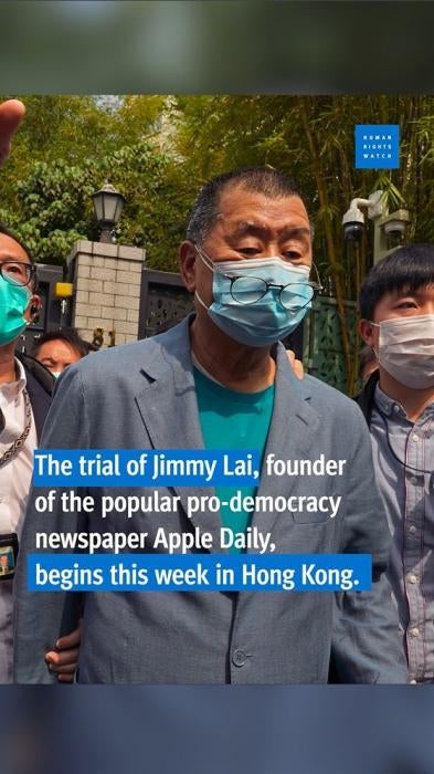 (New York) – Pihak berwenang Hong Kong seharusnya membatalkan tuduhan tak berdasar terhadap Jimmy Lai, pendiri surat kabar prodemokrasi Apple Daily, dan membebaskannya dari penjara, demikian pernyataan Human Rights Watch hari ini. Persidangan atas kasus keamanan nasional yang menimpai Jimmy Lai yang dikaitan dengan keamanan nasional dijadwalkan akan dimulai pada 18 Desember 2023, dan diperkirakan akan berlangsung selama 80 hari.