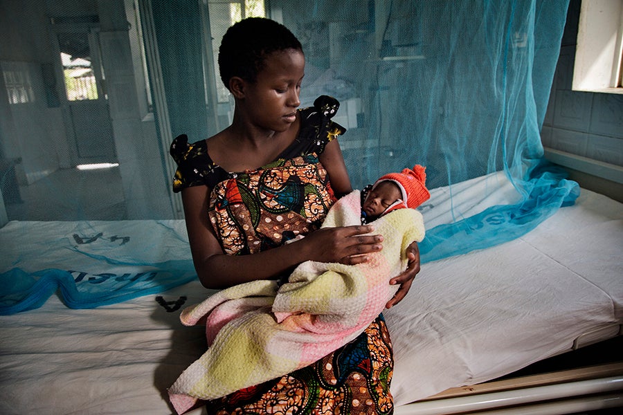 Angela, 15, holds her newborn baby girl in a hospital in Tanzania. Unmarried and living with her parents, she hopes to continue with her studies and one day become a nurse. Shinyanga, Tanzania. August 4, 2014.