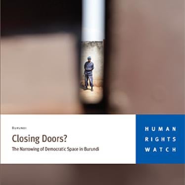 The 69-page report, "Closing Doors?: The Narrowing of Democratic Space in Burundi," documents abuses including torture, arbitrary arrests, banning of opposition activities, and harassment of civil society groups. Human Rights Watch called on the government to end the abuses and to strengthen institutional mechanisms to promote accountability by government officials and security forces.