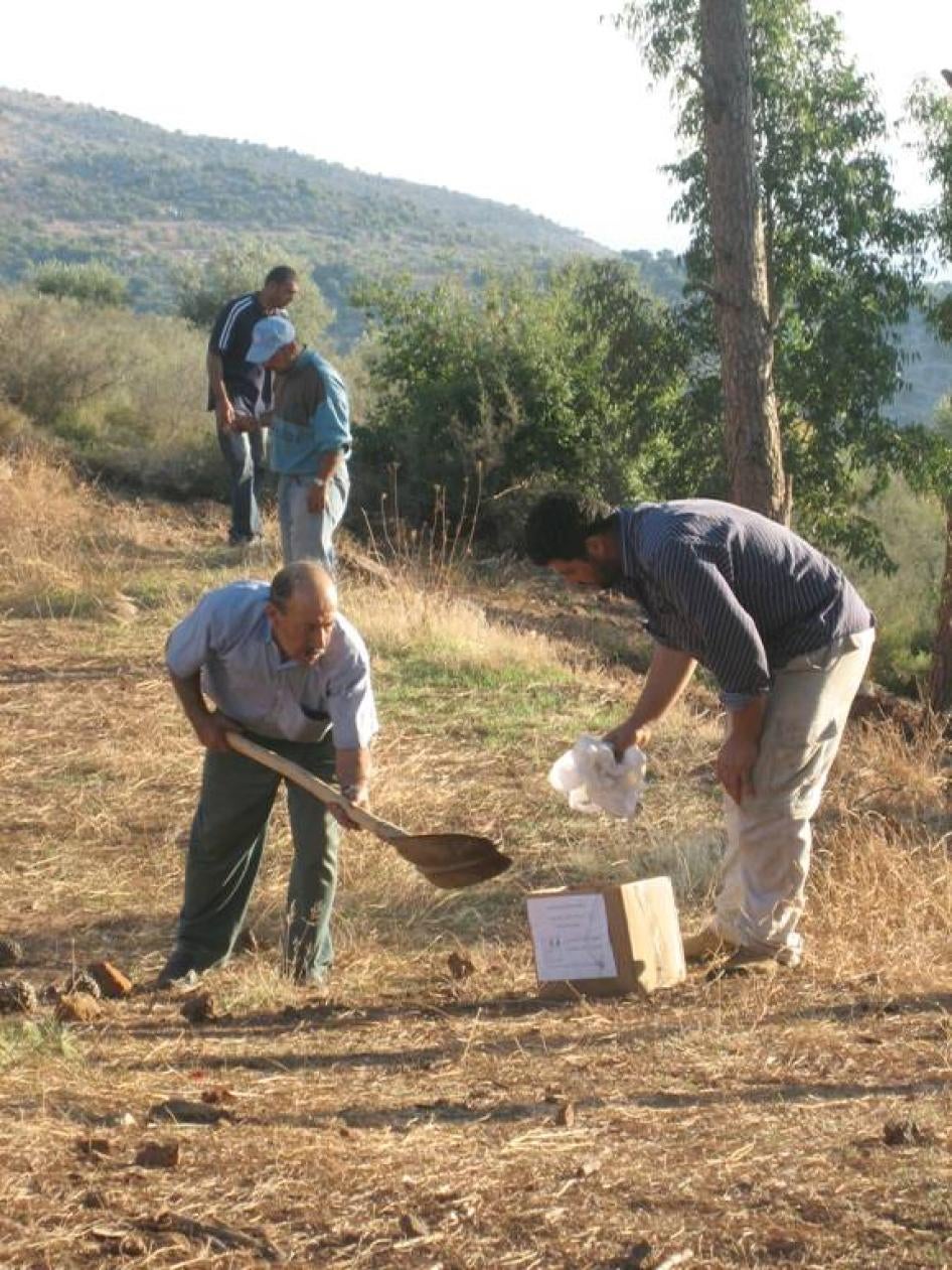 [283] Human Rights Watch interview with Habbouba Aoun, coordinator, Landmines Resource Center, Beirut, October 20, 2006; Human Rights Watch interview with Ahmed Ismael Kadre, farmer, Kfar Shufa, October 22, 2006; Anthony Shadid, "In Lebanon, a War's Lethal Harvest; Threat of Unexploded Bombs Paralyzes the South," Washington Post, September 26, 2006.