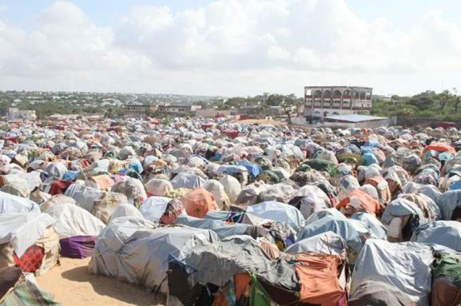 The new government of Somalia plans to relocate tens of thousands of internally displaced people (IDPs) within Mogadishu this year. Many of these people had arrived in the war-torn capital in 2011 as a result of a devastating famine that provoked widespread displacement. The famine was caused by unrelenting drought, ongoing insecurity and fighting, the blocking of civilian access to humanitarian assistance, and increasing “taxation” of resources and livestock by the armed Islamist group al-Shabaab in south-central Somalia. Although there is no accurate death toll, tens of thousands of people are believed to have died as a result of the famine. Hundreds of thousands of people fled into neighboring countries and the United Nations estimates that more than 75,000 IDPs arrived in Mogadishu within the space of nine months in 2011. Instead of finding refuge and the humanitarian assistance they urgently needed, many displaced people encountered a hostile and abusive environment in Mogadishu.