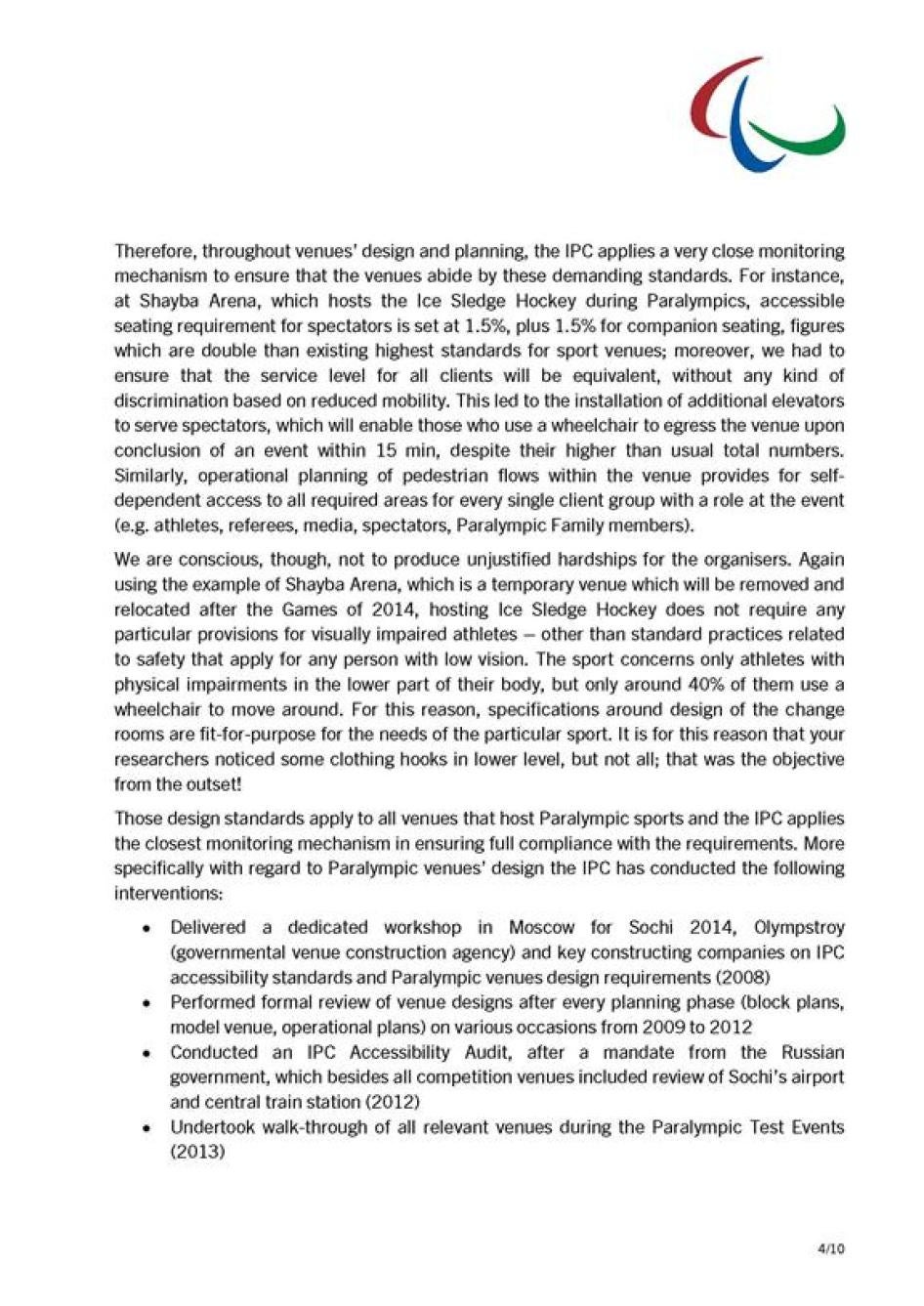 The IPC’s Expectations of the Sochi 2014 Olympic Organizing Committee